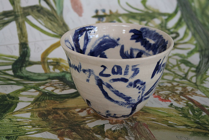 Richard Dunlop and Kylie Elkington, Unique bowl ← Previous Next → 2015 (side view) from the ‘How to Draw Plants’ series, stoneware, cobalt underglaze, gloss glaze, -Sold-